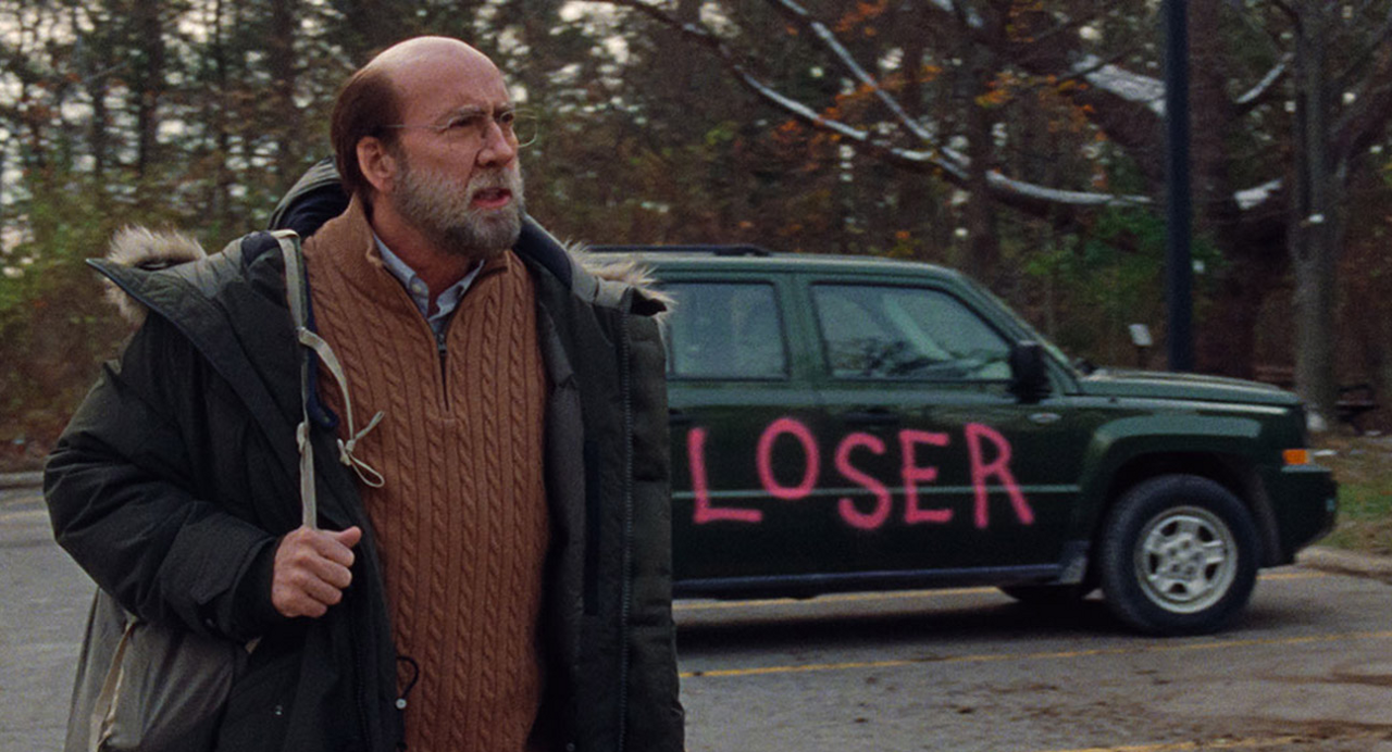 Review: While Nicolas Cage’s shocked expression almost sells the film’s premise, the background is a bit too faded and makes the design look more cheap than creative.